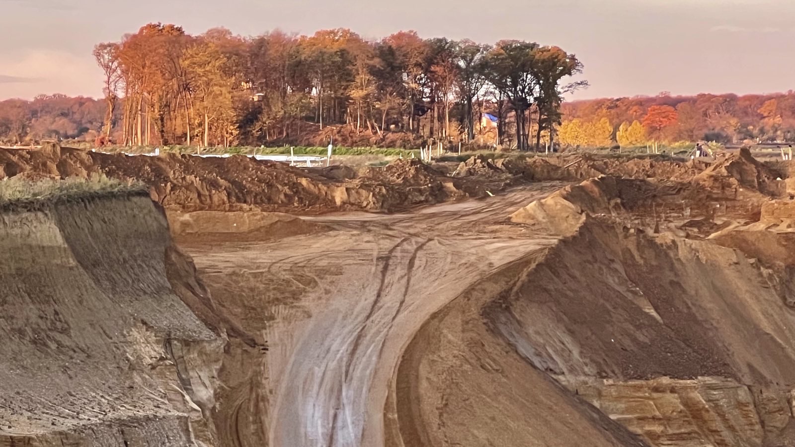 RWE hat heute eine Zufahrt von der Landstraße zum Sündi befahrbar gemacht. Auch die Zufahrt aus der Grube über die Rampe wurde fertiggestellt.