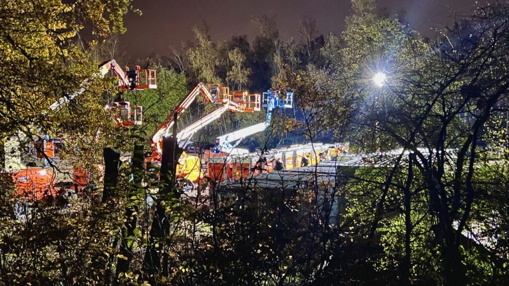 Wie bereits getickert sind Cops und Secus mehrfach im und am Barrio gewesen, haben Barrikaden zerstört, Wege zum Sündi und Rampen aus dem Tagebau vorbereitet. Hebebühnen, Baustrahler, Bauzäune, Sanitäranlagen und Baumaschinen sind bereits angeliefert und ausprobiert worden.