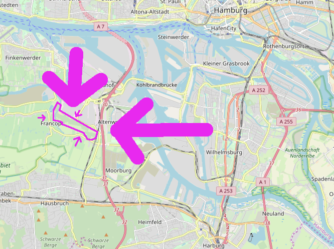 Eine Mahnwache ist nahe der Straße „Vollhöfner Weiden“, von Altona und Harburg fahren Busse.